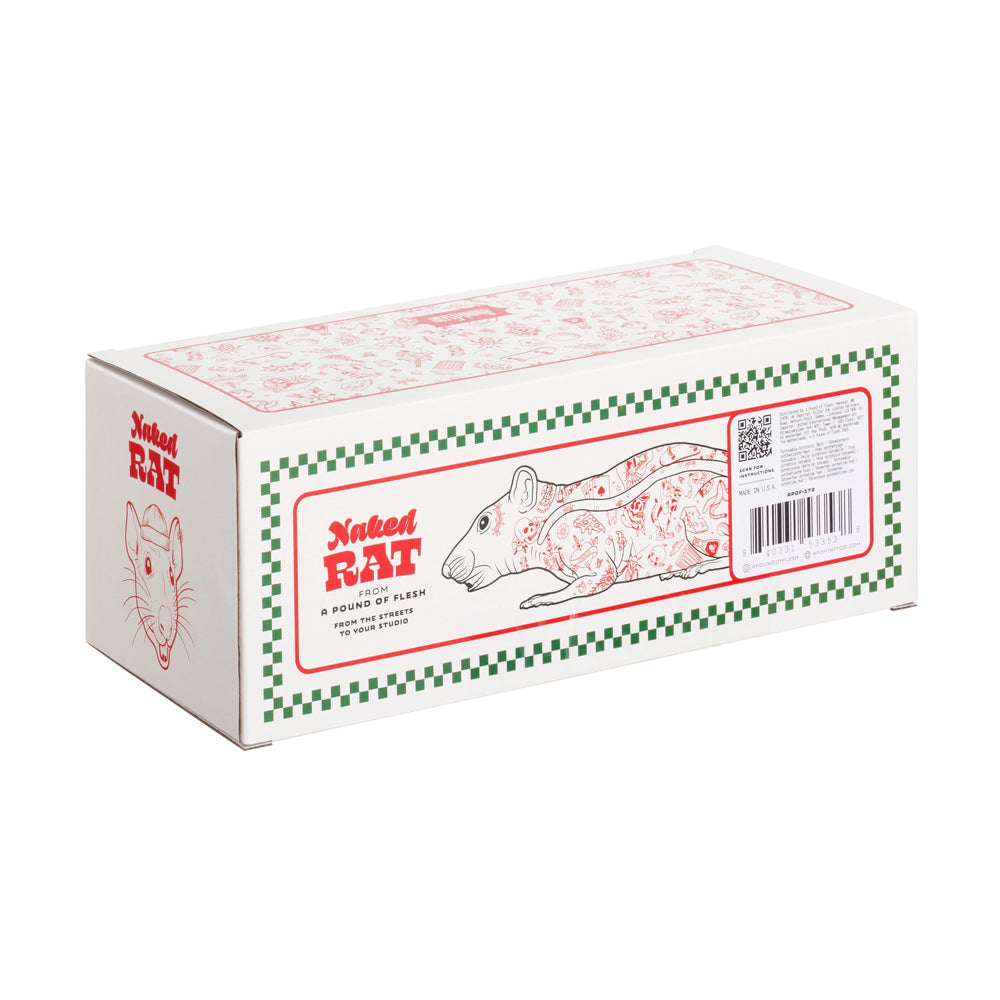 Meet your new BRF (Best Rat Forever) – A Pound of Flesh Naked Rat, fondly known as Squeakers. Let this little mischief-maker scurry into your portfolio and shake up your practice game. He’s the only vermin you want creeping around your shop—bald, weird, tattooable, and begging for your best work (instead of cheese).