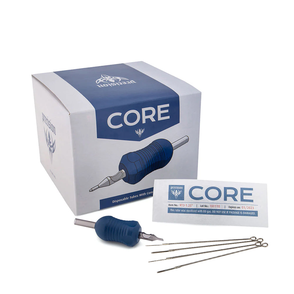 This disposable setup contains one box of 20 Precision Core Tube & Grip sets along with a 20 pack of Tommy's Needles.