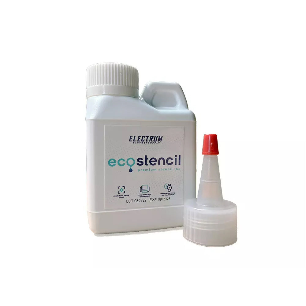 Oops, they did it again! Electrum has gone and made printed stencils even better, with an advanced formulation and a much better price point! Now you can print highly precise stencils directly from a desktop printer using your photo reference, without the need to hand stencil your design. Just print, transfer, and tattoo! This is for one 4oz bottle of Electrum ECO Stencil ink. You will need two bottles to completely fill all four reservoirs on an Epson Eco Tank printer.
