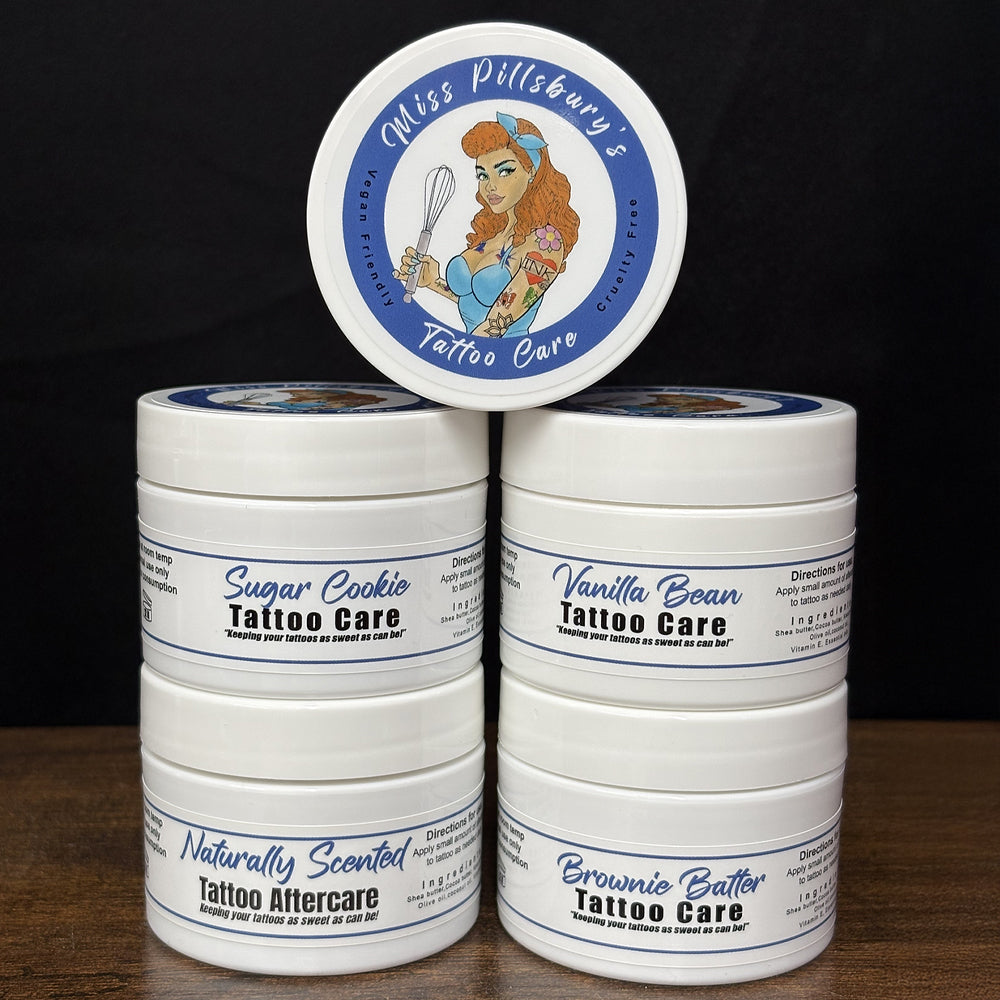 Can't decide which amazing scent to try? Now you don't have to with their all-new Collection pack! Get one of each of their amazing scents. Originally developed as an aftercare substitute to petroleum-based products this butter like aftercare also works great during the tattoo process! Helps alleviate redness and swelling during the tattooing process and will NOT remove the stencil.