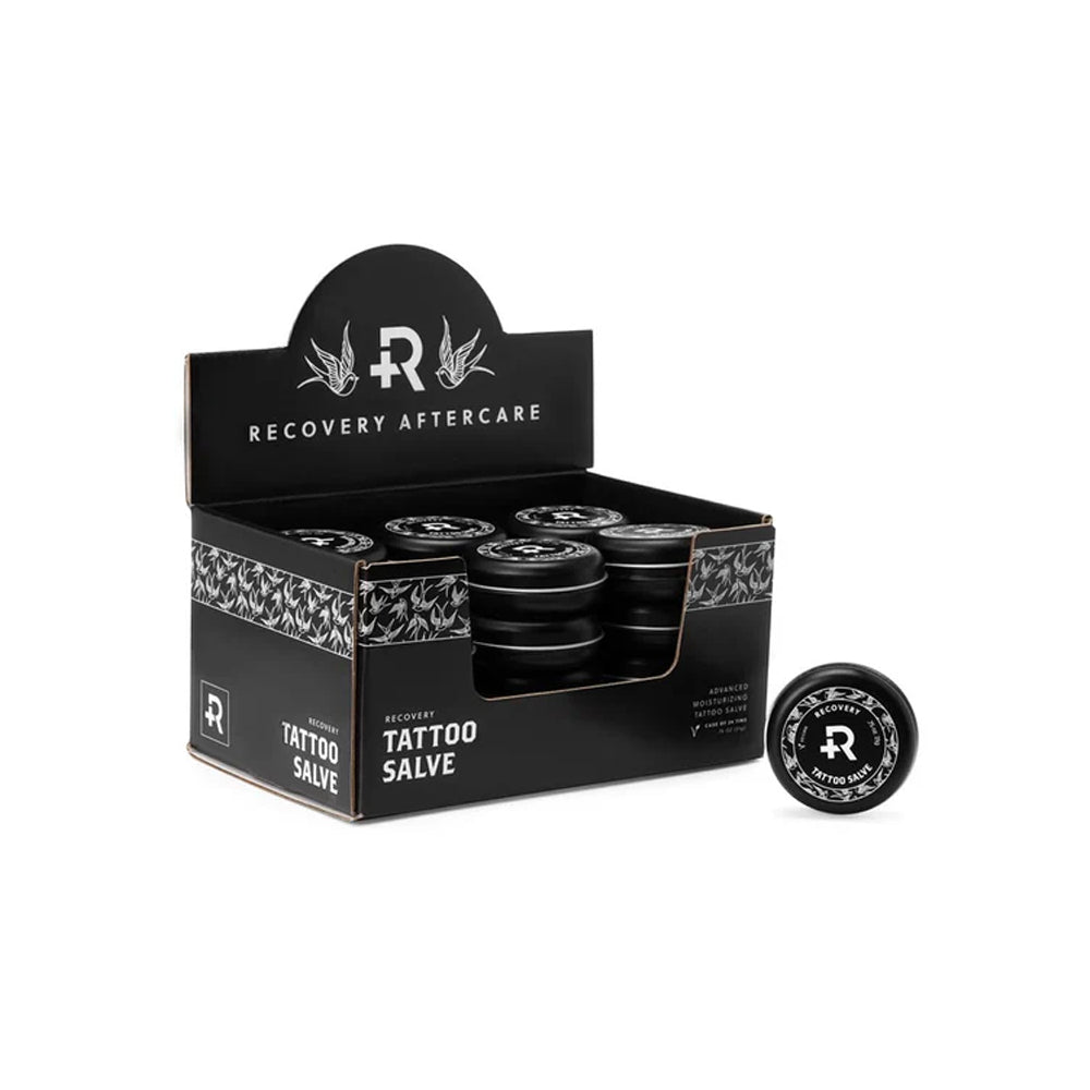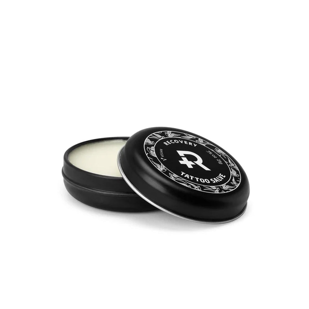 Clean new tattoo and pat dry. Apply a thin layer of Recovery Tattoo Salve 3 to 4 times a day for 7 to 10 days. Use daily on healed tattoos to moisturize and enrich color.
