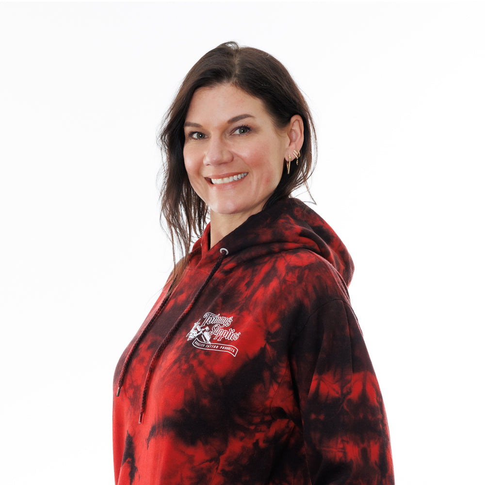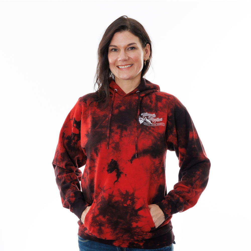 Limited edition red tie dye unisex t-shirt designed by StarBrite pro team artist George Drone